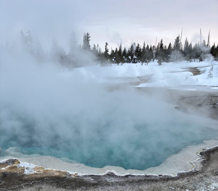 ARRIVED! We had a nice dinner at the Old Faithful Snow Lodge before heading to bed. We’ll be up before sunrise tomorrow to watch the geysers put on a show!